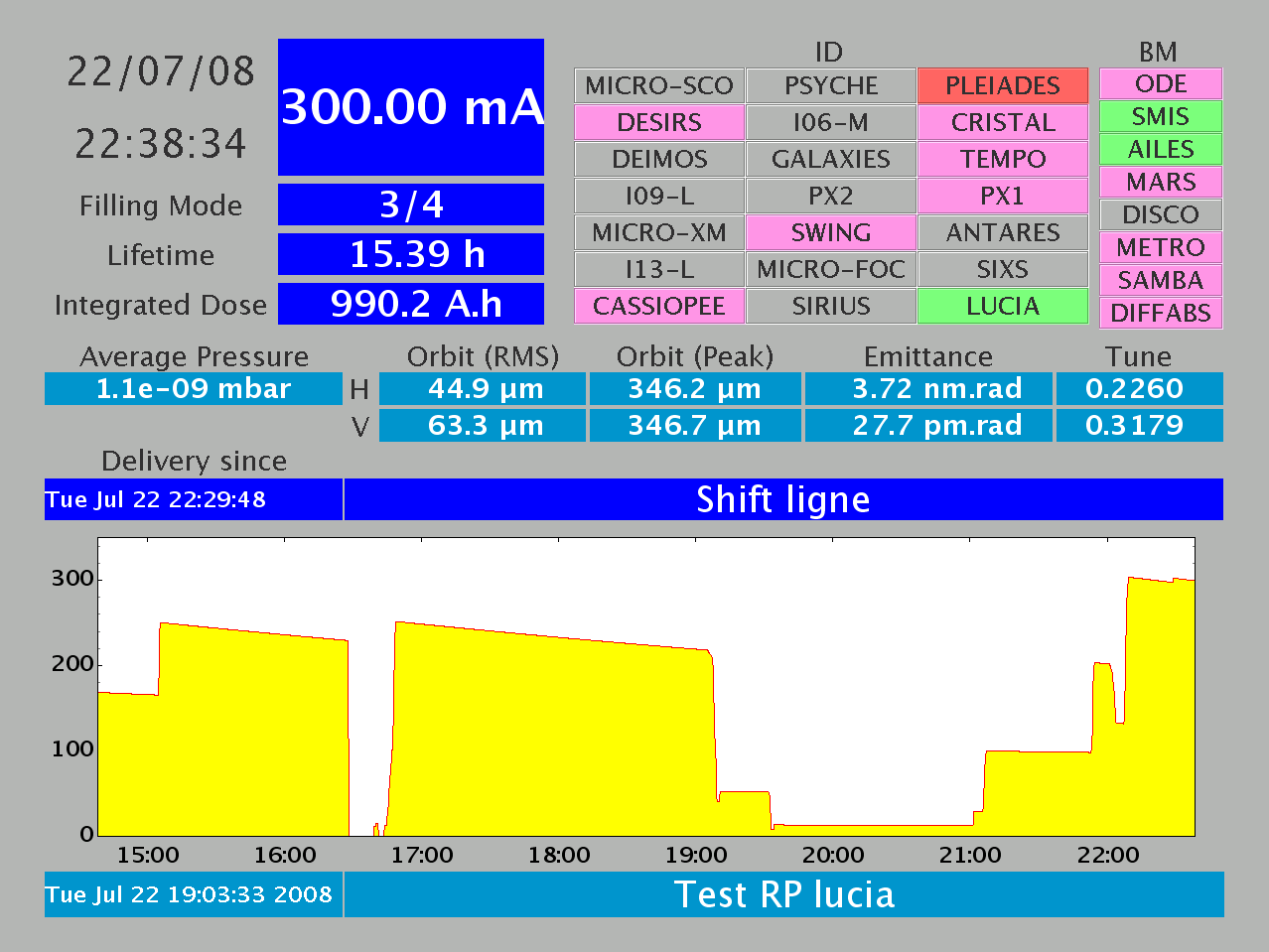 | 2003: Swiss Light Source, December 9th 2003, first beam delivered by LUCIA | 2008: Synchrotron SOLEIL, July 22nd 2008, first beam re-delivered by LUCIA |