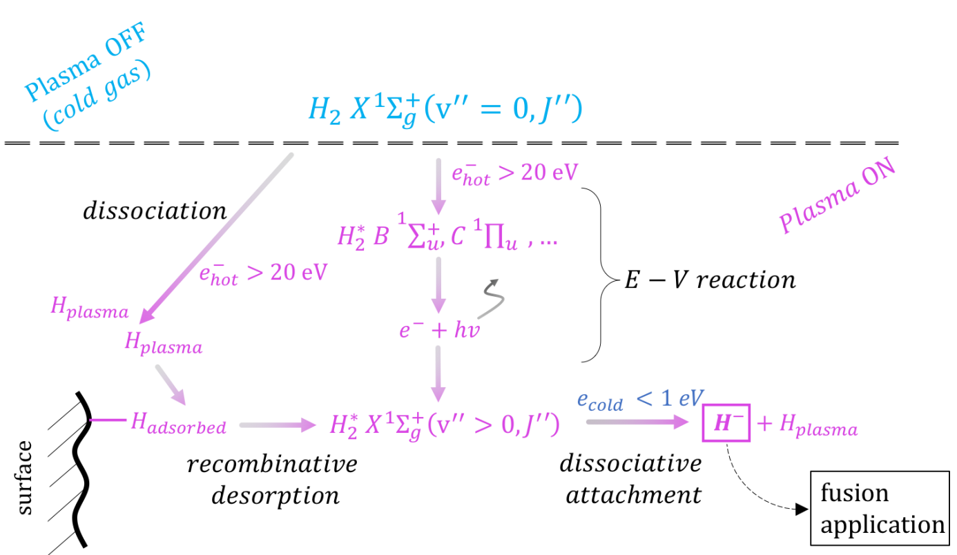 To overcome these obstacles, in the framework of the EUROFusion consortium, scientists from Grenoble, Paris, Orléans, Patras (Greece), Eindhoven and Moscow are conducting fundamental studies on the production of (H-/D-) 2 negative ions without the use of Cs in the development of the DEMO reactor.