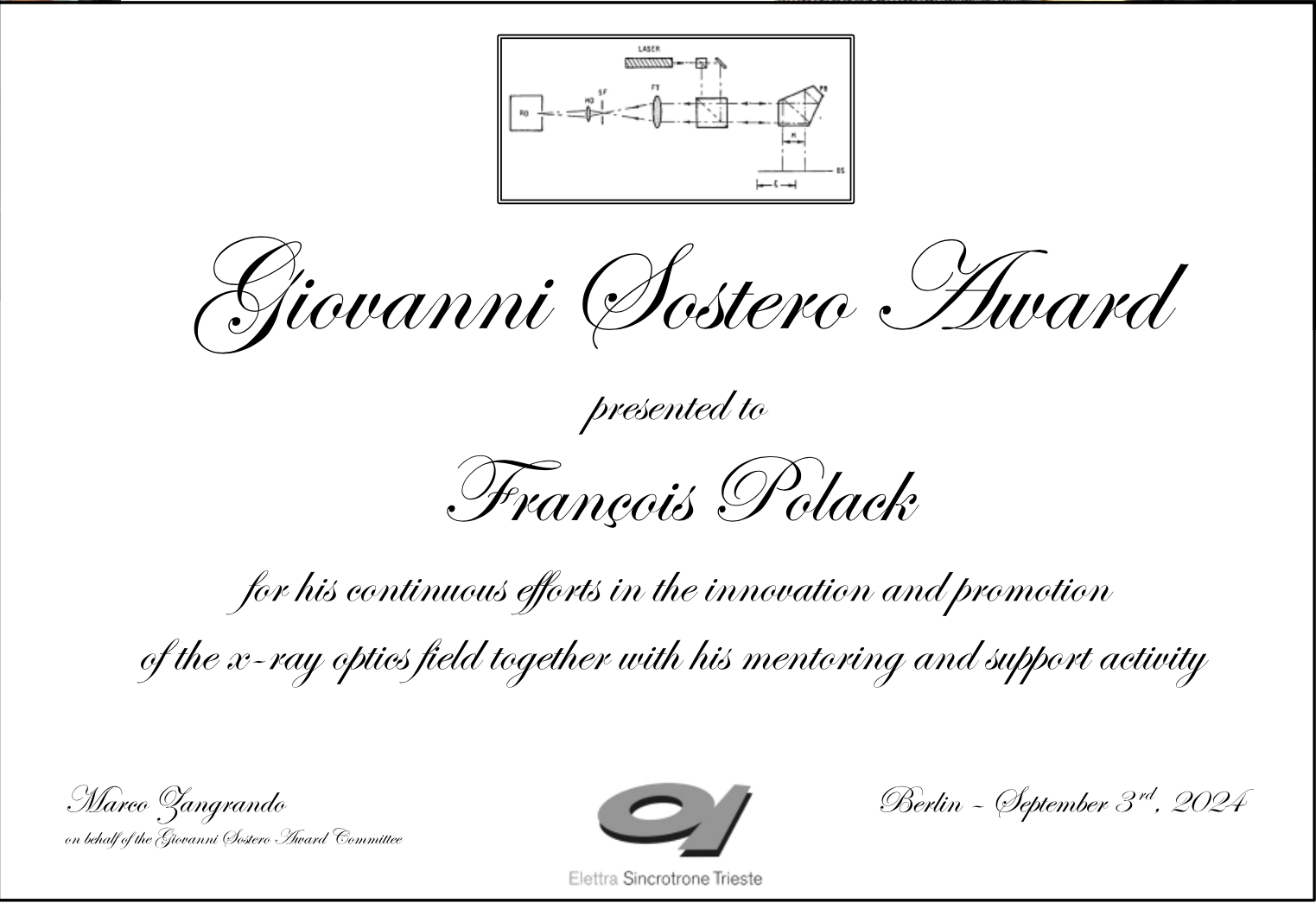 During the Workshop on Metrology for X-ray Optics, Mirror Design and Fabrication IWXM 2024, hosted by the Helmholtz Zentrum in Berlin, our colleague François Polack was awarded the 5th Sostero Award.