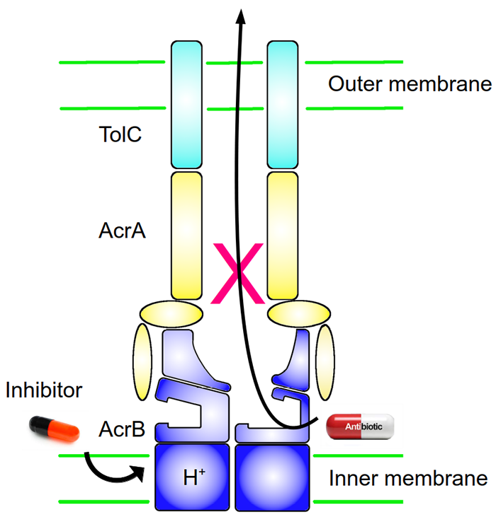 For years, research aimed at inhibiting efflux pumps has mainly focused on this binding pocket, the objective being to find molecules that can bind to this pocket instead of the antibiotics, thus preventing their expulsion. Scientists have thus designed several agents that block the "dust bag" (inhibitors) in order to prevent aspiration. However, all these inhibitors have failed to reach the market due to their lack of potency or, more notably, their toxicity to the patient.