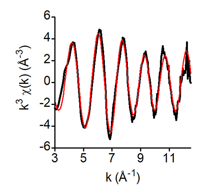 Leurs mesures par spectroscopie d’absorption des rayons X sur la ligne SAMBA ont permis de montrer que le fer se lie à ICSU dans un site contenant des cystéines et a permis de déterminer la première structure du site à fer de la protéine ISCU de souris. D’après l’analyse des données d’EXAFS, le fer est sous forme mononucléaire lié par quatre atomes : deux soufres et deux azotes et/ou oxygène (Fig. 2).