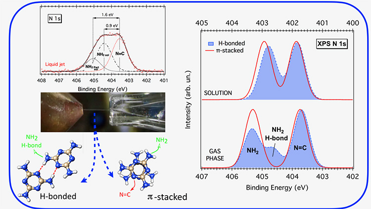 Une étude récente, réalisée sur la mélamine en solution aqueuse, a révélé que l'impact du solvant sur les électrons internes dépend fortement de la nature du site chimique où les électrons sont situés et de l’implication éventuelle de ce site dans des interactions spécifiques entre molécules.