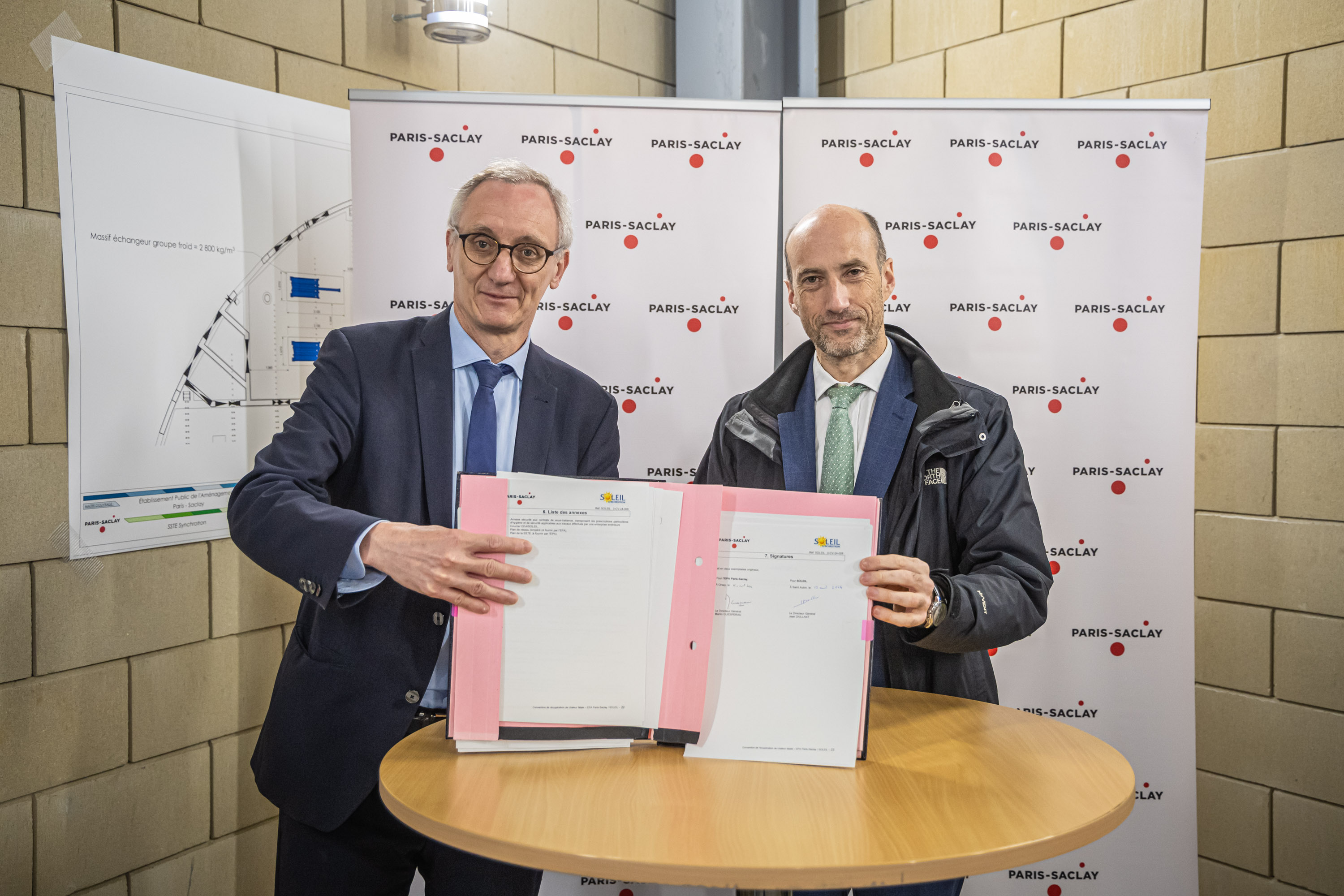 L’EPA Paris-Saclay et SOLEIL ont signé une convention de partenariat, le 15 avril 2024, pour capter et valoriser la chaleur fatale* produite par le Synchrotron. Elle alimentera un réseau d’échange de chaleur et de froid de 5e génération. Ce réseau permettra de chauffer 1000 logements du campus urbain et le centre aquatique de la ville de Gif-sur-Yvette à un coût très avantageux.