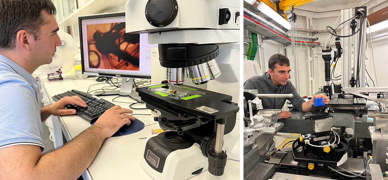 © P. Gueriau & C. Iacconi Droite : Un fragment d'ambre de la Baltique positionné sur le porte-échantillon de la ligne PUMA.