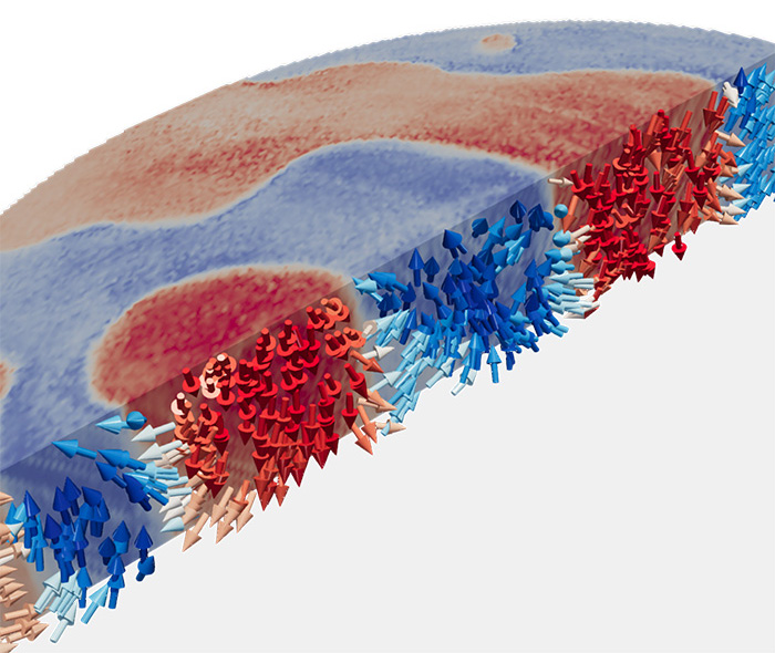 Les microscopes de laboratoire ont montré une texture magnétique en bandes courbes avec une magnétisation locale principalement vers le haut ou vers le bas. La méthode tomographique a permis de capturer les détails fins de ce motif, en particulier la façon dont l'aimantation tourne de haut en bas entre les bandes voisines. Avec une résolution de 80 nm pour explorer une région de 5 µm x 5 µm x 1 µm, de nombreux détails sont révélés !