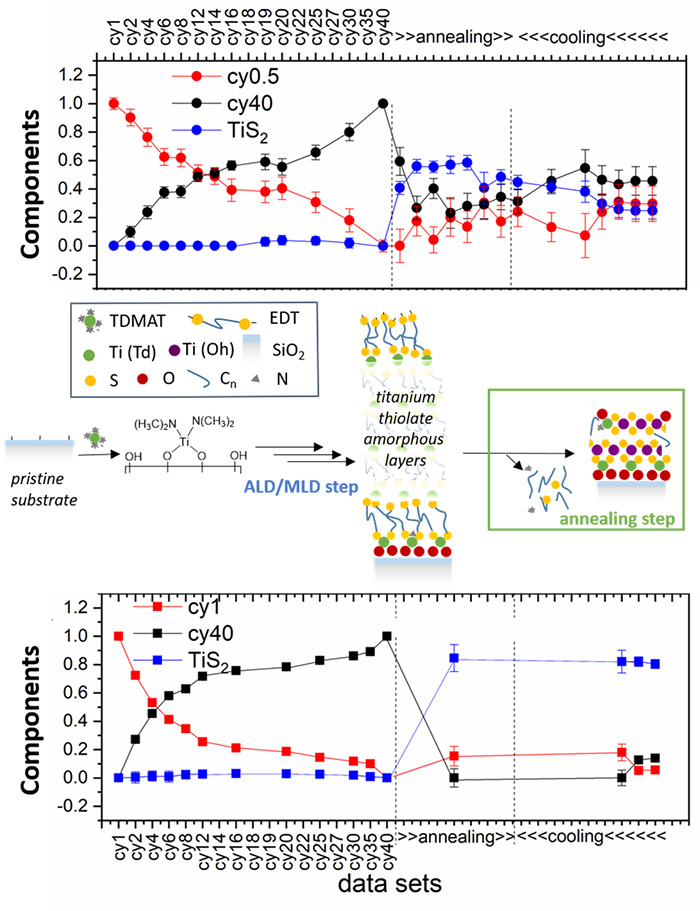 Sur la base des résultats obtenus grâce à ces techniques, un aperçu schématique de l'ensemble du processus ALD/MLD + recuit a été développé (figure-3). En s'appuyant sur des techniques XAS avancées et sur la modélisation DFT, les chercheurs ont acquis une meilleure compréhension des processus à l'échelle atomique qui régissent la croissance des films de TiS2, ouvrant ainsi la voie à de futures avancées dans le domaine des matériaux stratifiés ultraminces.