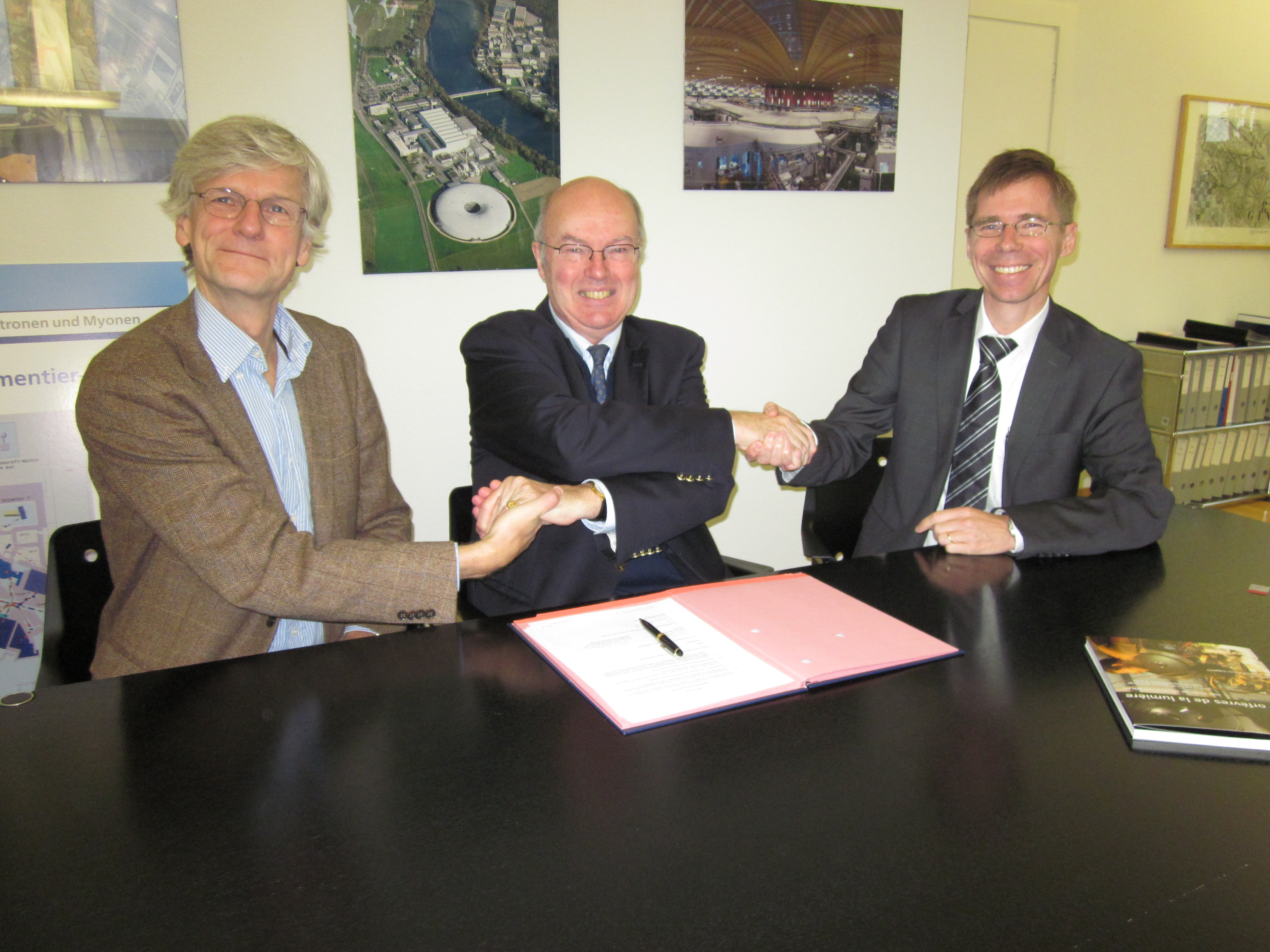 - Friso van der Veen, directeur adjoint PSI - Michel van der Rest, directeur du synchrotron SOLEIL - Joël Mesot, directeur PSI