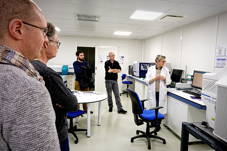 A SOLEIL, la lumière était cette fois non plus un ennemi à maitriser mais un allié dans l’étude des matériaux anciens. Les professeurs ont visité les lignes PUMA, ANATOMIX et DIFFABS, dont les équipes ont expliqué comment elles sont sollicitées pour des études sur le patrimoine. Le laboratoire de chimie a aussi ouvert ses portes, pour des ateliers de mise en pratique : une investigation de la matière picturale (pigments notamment) grâce à la diffraction des rayons X sur poudre et la spectroscopie Raman, mise en œuvre et commentée par Solenn Reguer, scientifique sur DIFFABS, et Stéphanie Blanchandin, responsable des laboratoires de chimie.