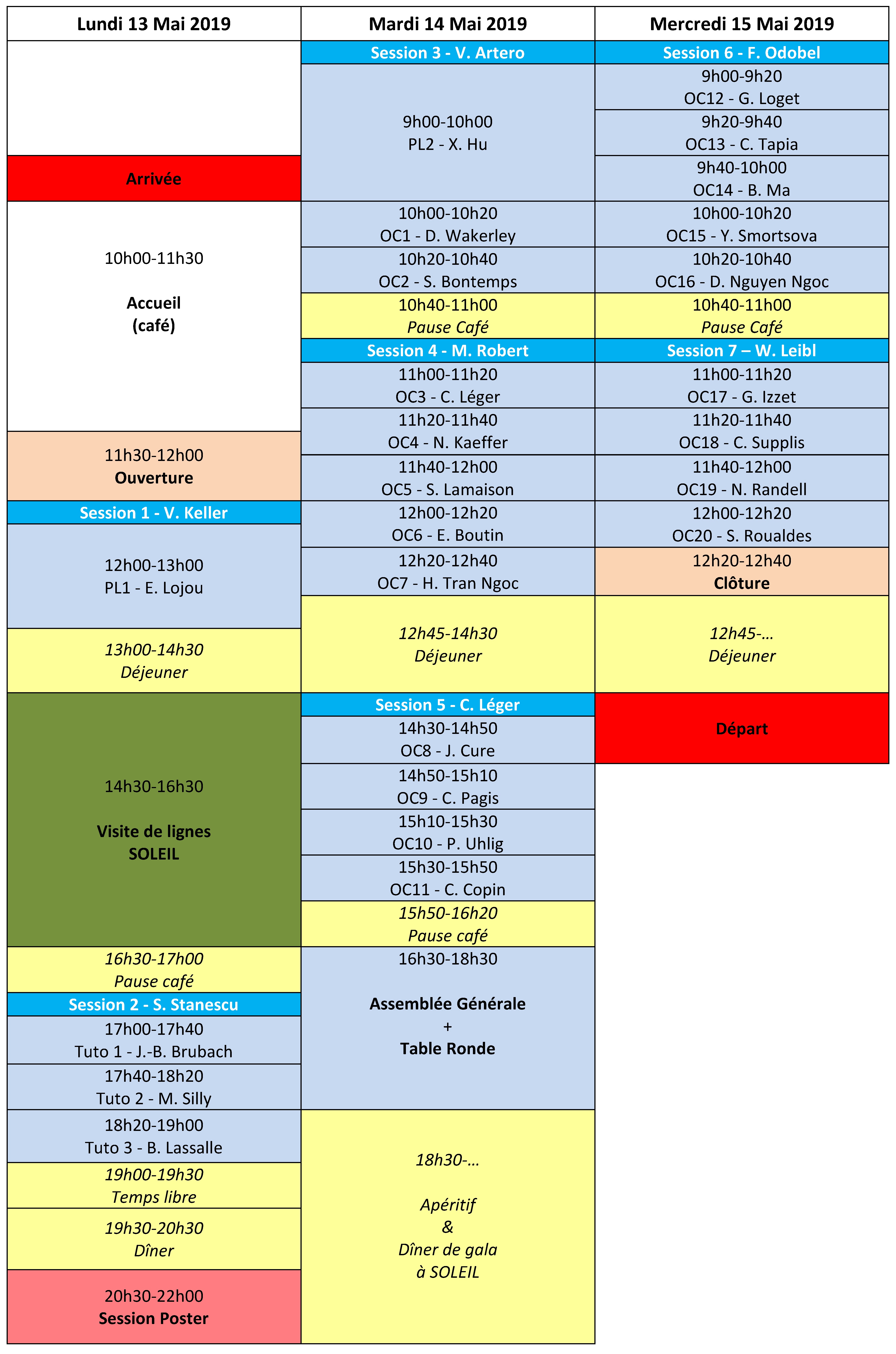 Des conférences invitées ainsi que des tutoriels portant sur des techniques avancées couplés à des visites de lignes de lumière rythmeront ces trois jours. Des séances posters et des temps de discussion informels permettront d’échanger sur les avancées actuelles de la communauté.